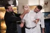Messy 3-some for a clumsy waiter with hard cock and food!